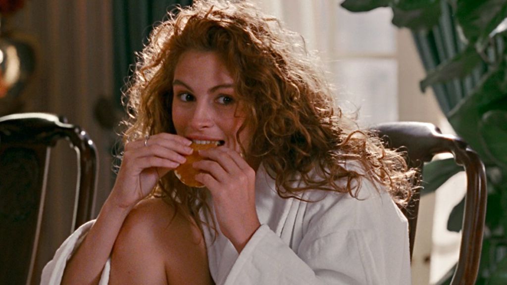 A personagem começa então a comer um grande croissant e, enquanto conversa com Edward, a câmera alterna em questão de segundos entre os dois, apenas para voltar para uma Vivian agora segurando uma panqueca pela metade.