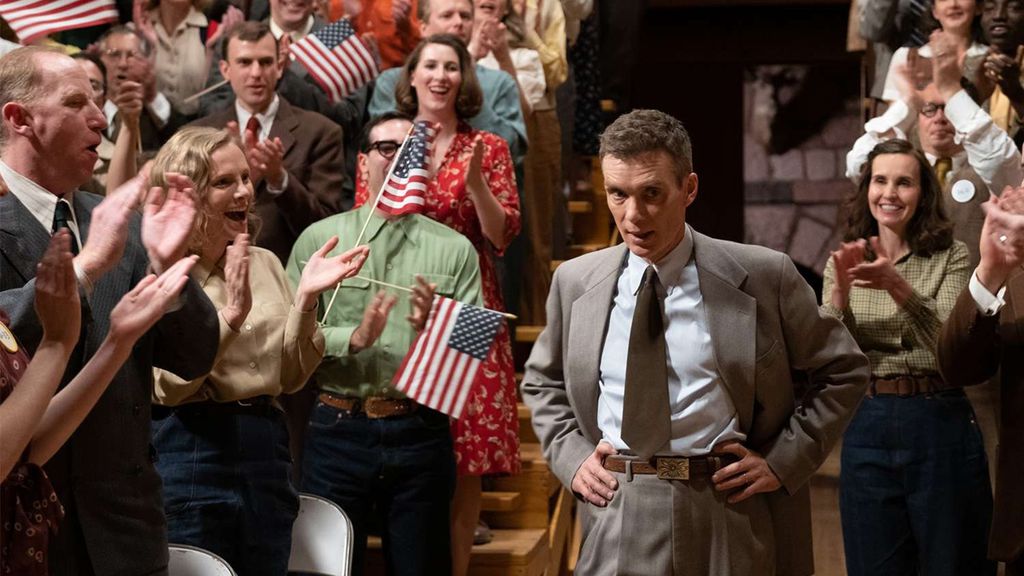 Na cena em que estão saudando Robert Oppenheimer pela explosão da bomba atômica é possível ver vários personagens segurando a bandeira dos Estados Unidos ao fundo. Uma imagem que não teria maiores problemas não fosse o fato de que as bandeiras em questão têm 50 estrelas – uma versão instituída apenas quinze anos depois, em 1960, quando o Alasca e o Havaí foram admitidos como estados americanos.