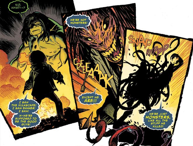 Mas sabia Banner que Hulk finalmente estava consumindo algo inédito em sua existência, o amor por uma criatura que a via como um igual. Recentemente, o alter-ego disse ao humano que isso foi a pior coisa que poderia ter feito.