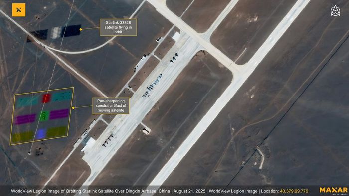 No último dia 21, um satélite Starlink, da SpaceX, foi inesperadamente flagrado sobrevoando a base aérea de Dingxin, no deserto de Gobi, na China. O registro ocorreu durante uma captura de imagens feita por um satélite de observação da empresa norte-americana Maxar Technologies e resultou em um efeito visual raro e impressionante. A cena foi registrada pelo satélite WorldView Legion, que orbitava a 518 quilômetros de altitude.
