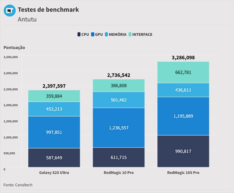 “Com mais de 3 milhões de pontos no Antutu, o RedMagic 10S Pro supera 99% dos celulares registrados na plataforma”